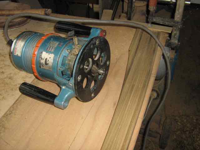 Action with the router, that edge near the power tool is now nicely rounded over, it took about 30 seconds. Note that I was given that old beast of a router by my elderly uncle, he thinks its probably 40 years old, today you’d get one like that for $10 or so and it works just fine. Its much simpler than todays flash harry ones, and I much prefer it for heavier use. I’ve a little laminate trimmer for very light work but this is the workhorse when there is serious stuff to do.