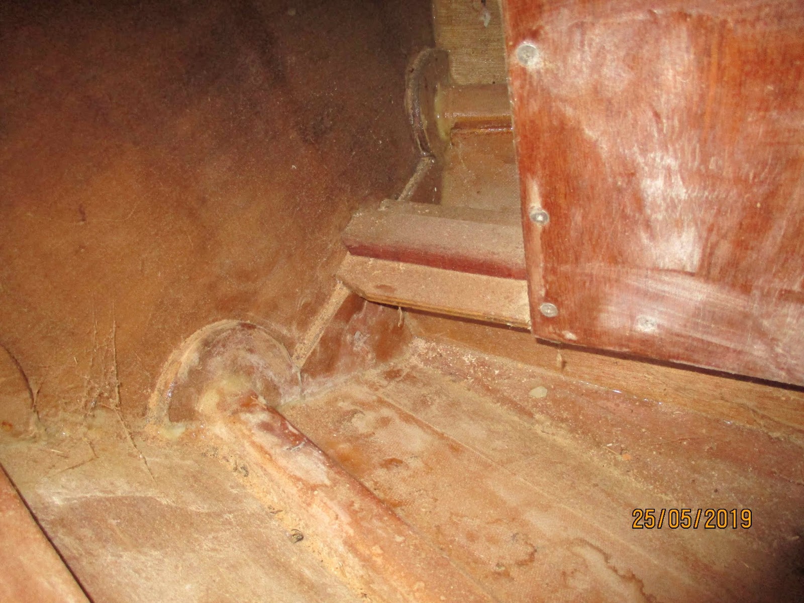 Here’s the battery box, its not bolted in yet but its a good fit to the curve of the bottom, the centreline web and the angle of the lowest plank so is well supported. Oddly enough the real risk is not while sailing, its being bounced around while the boats being towed on its trailer on my way to another adventure.