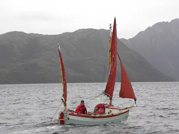 The SV Navara came across a tiny yacht sailing in the Magdalena Channel in the far south of Chile, not a sight they’d expected to see so they took pics and posted this to their website.