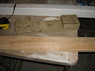 I made a couple of pads, just a couple of mm thicker than the “tongue”, each pad the depth of the light board and about 80mm long, then screwed a section of the same 20 x 90 across to form a socket into which the “tongue” fit reasonably neatly. I didn’t want to fight with it to get it on or off, but I didn’t want it too sloppy either and it took a couple of dry assembly runs to get it right.