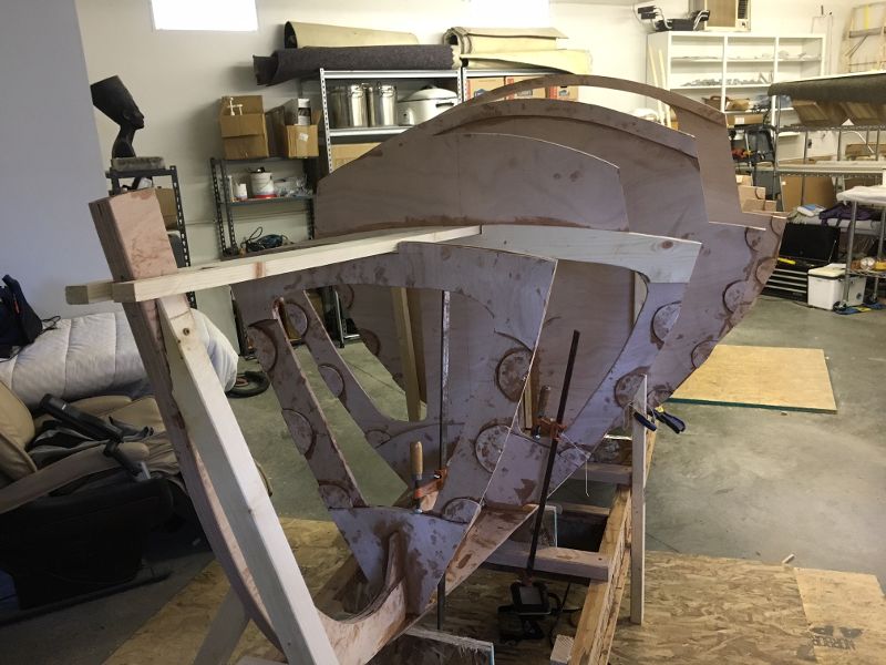 Howard and Phil are making famous progress with Phils boat, and Phil has been kind enough to send me some pics. This is toward the end of week one of the build, two guys working pretty much full time though, but its impressive all the same. I’m doing several hours each day trying to stay ahead with the drawings.