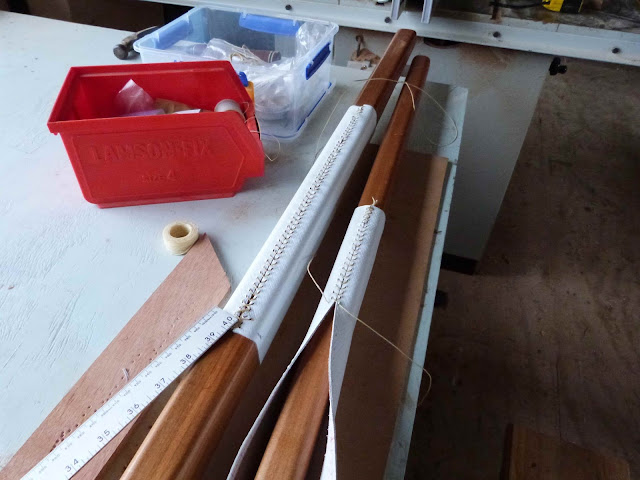 spent a couple of hours of that prepping the spars for SEI s rig. Today I’ve leathered both the yard and boom,