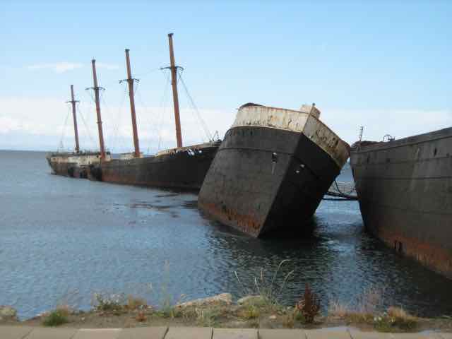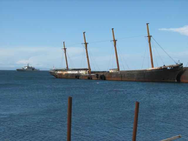 A graveyard of dreams and ships. These are Cape Horners, there are the remains of wrecks all along this shore, skeletal remains sticking up out of clear frigid water, ships that came this far and couldn’t make it further, the end of the line at the bottom of the world.