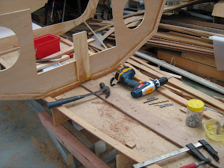 I’m building “Sunday” stringers over frames, but the frames are further apart than is usual as I’m trying to see where the limits are in that respect, and there are a few other experiments happening as well.
