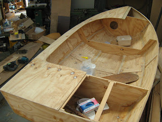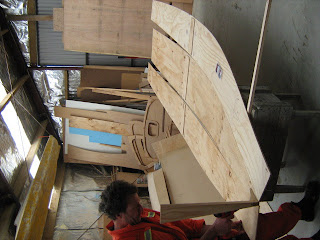 View from forward, that vertical wedge shape is the stem, there will be a rounded capping fitted after the plywood is all on.